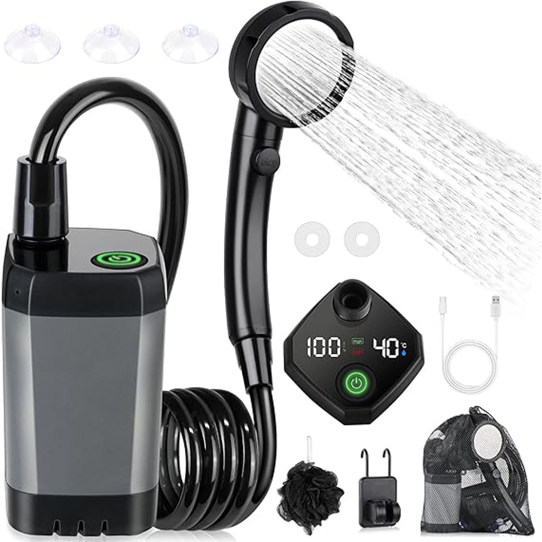 - Advanced LED Display – Our portable camping shower features an upgraded LED display for a clearer picture of power status and water temperature. From 32-140°F, you’ll be sure to avoid heat burns and power outages while enjoying your outdoor adventure.