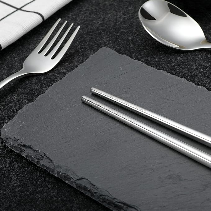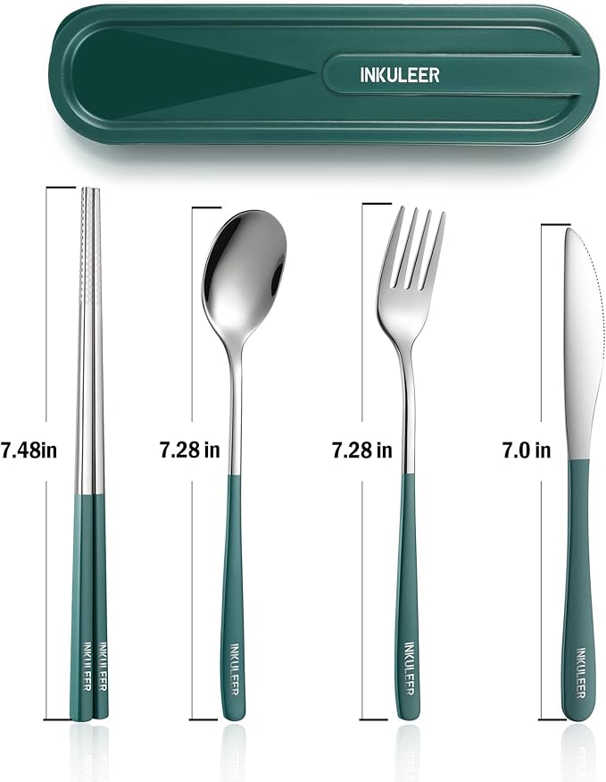 - Each set of travel cutlery includes 1 pair of chopsticks, 1 spoon and 1 fork,1 table knife